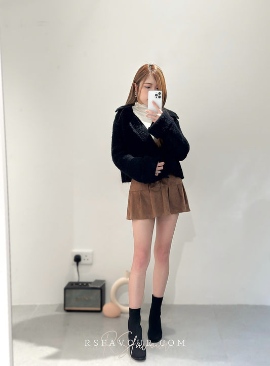 (KR) 珠冷軟綿綿反領短外套|兩色入