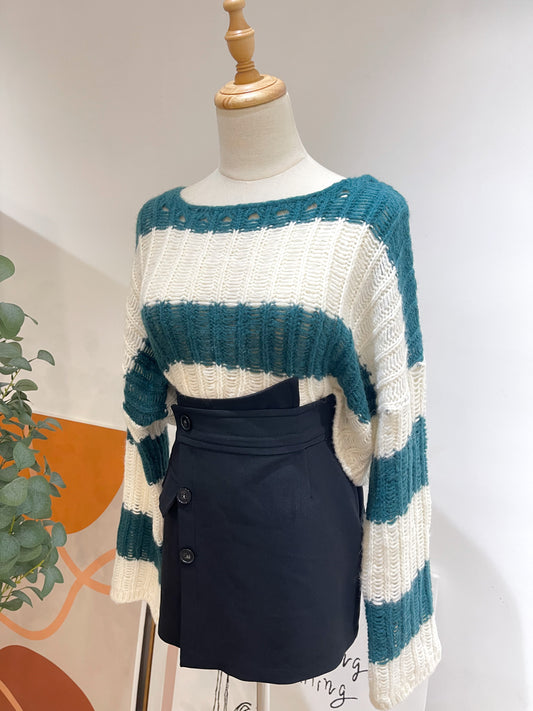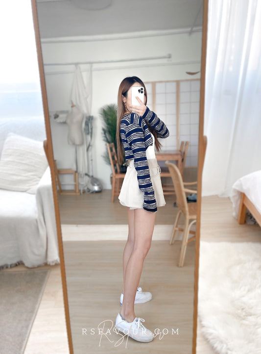 (KR) 暗直紋短身上衣×後開叉長裙套裝|兩色入