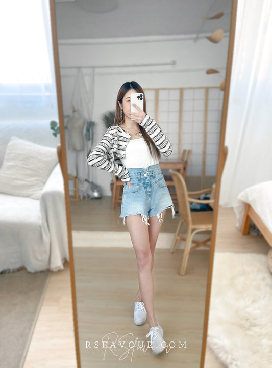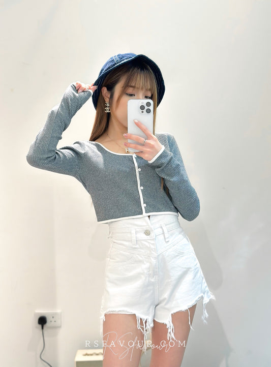 (KR) 珠冷軟綿綿反領短外套|象牙白