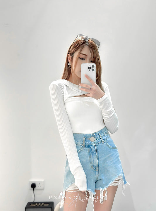 (KR) 珠冷軟綿綿反領短外套|象牙白