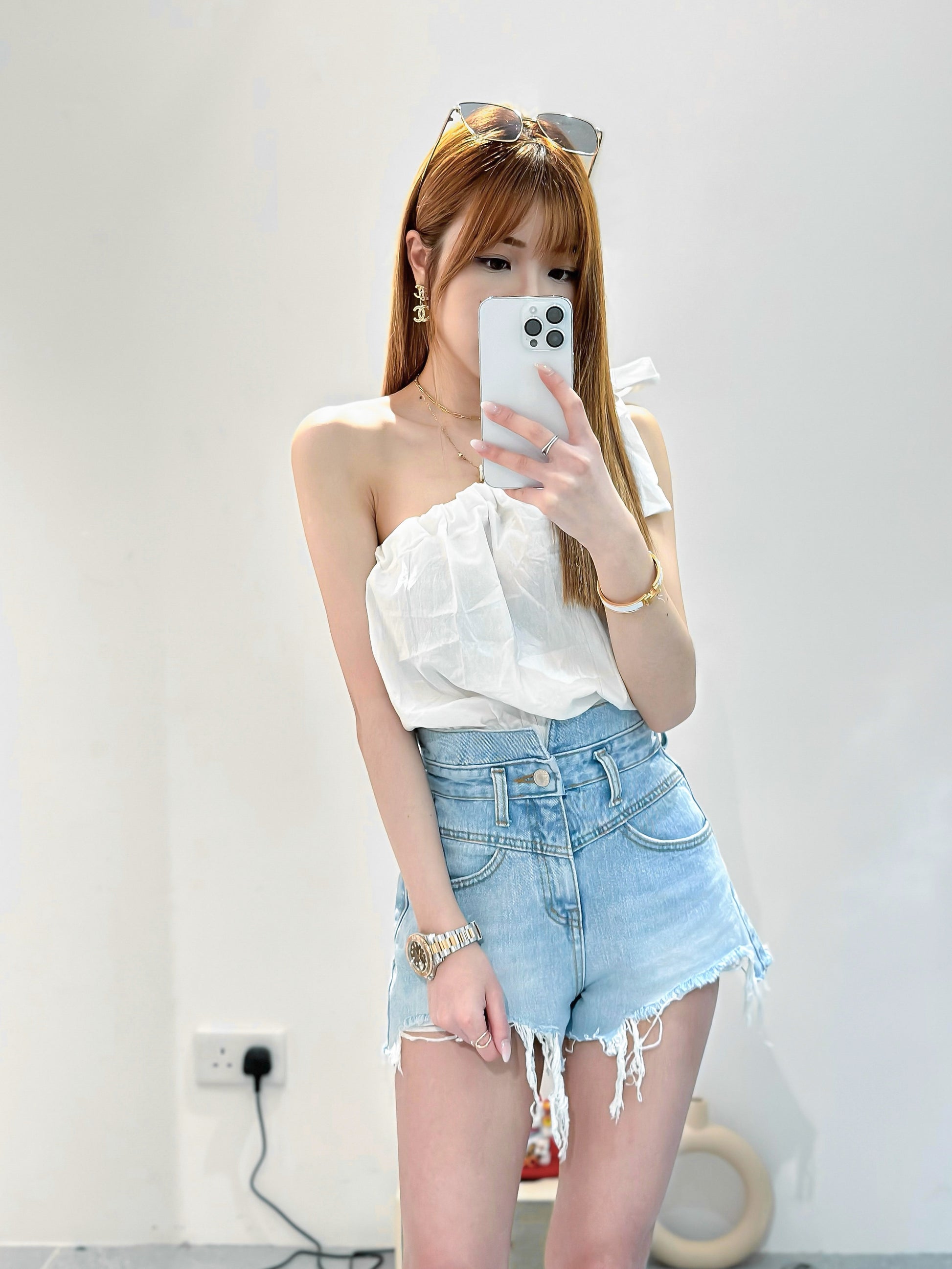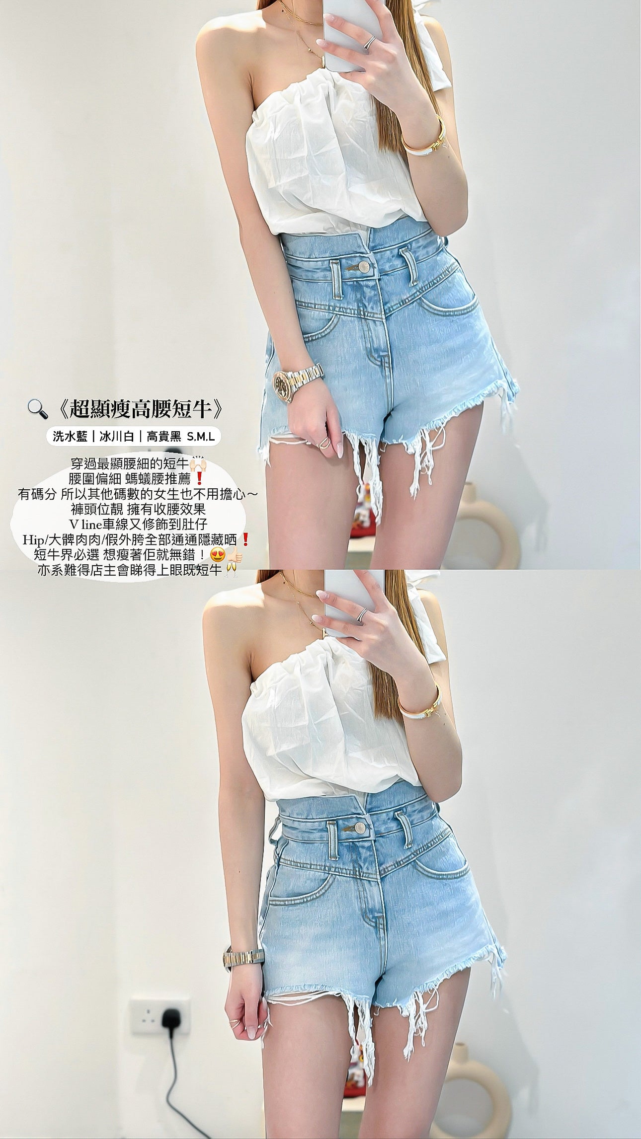 (KR) 高腰超顯瘦短牛|洗水藍