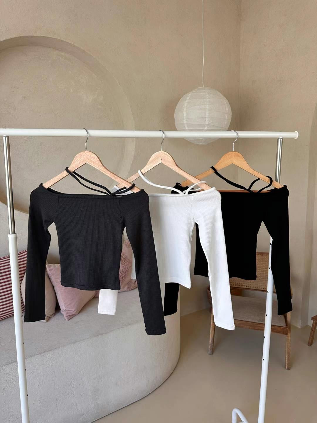 (KR) 不規則掛頸一字膊上衣|三色入