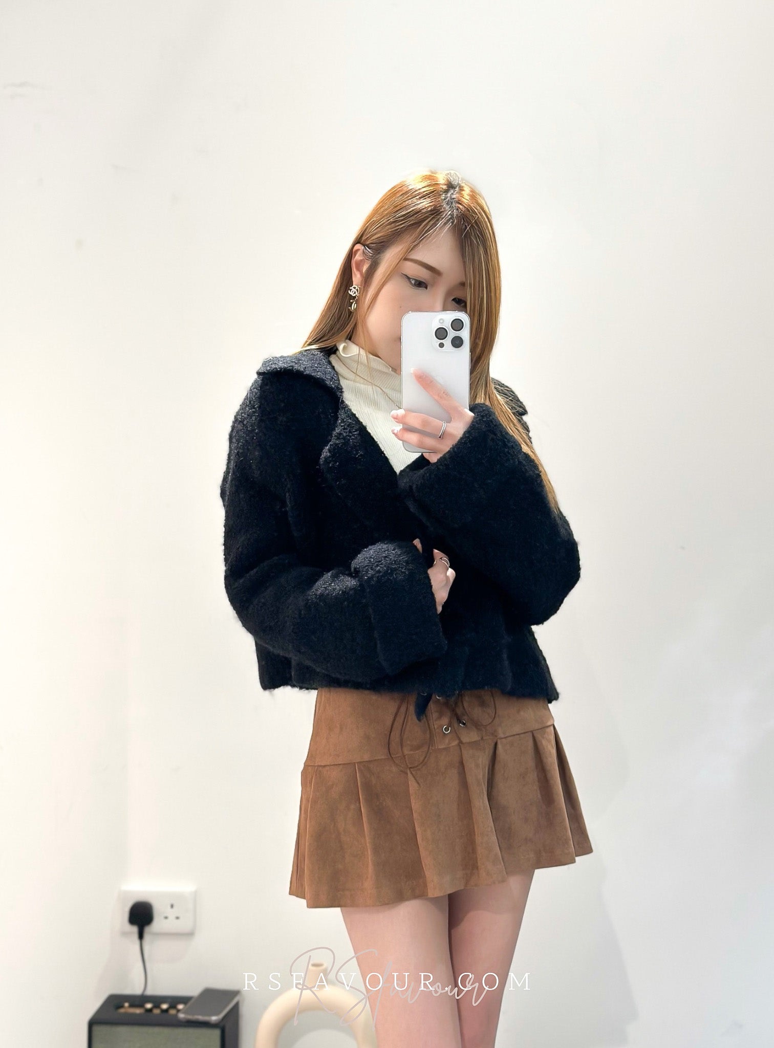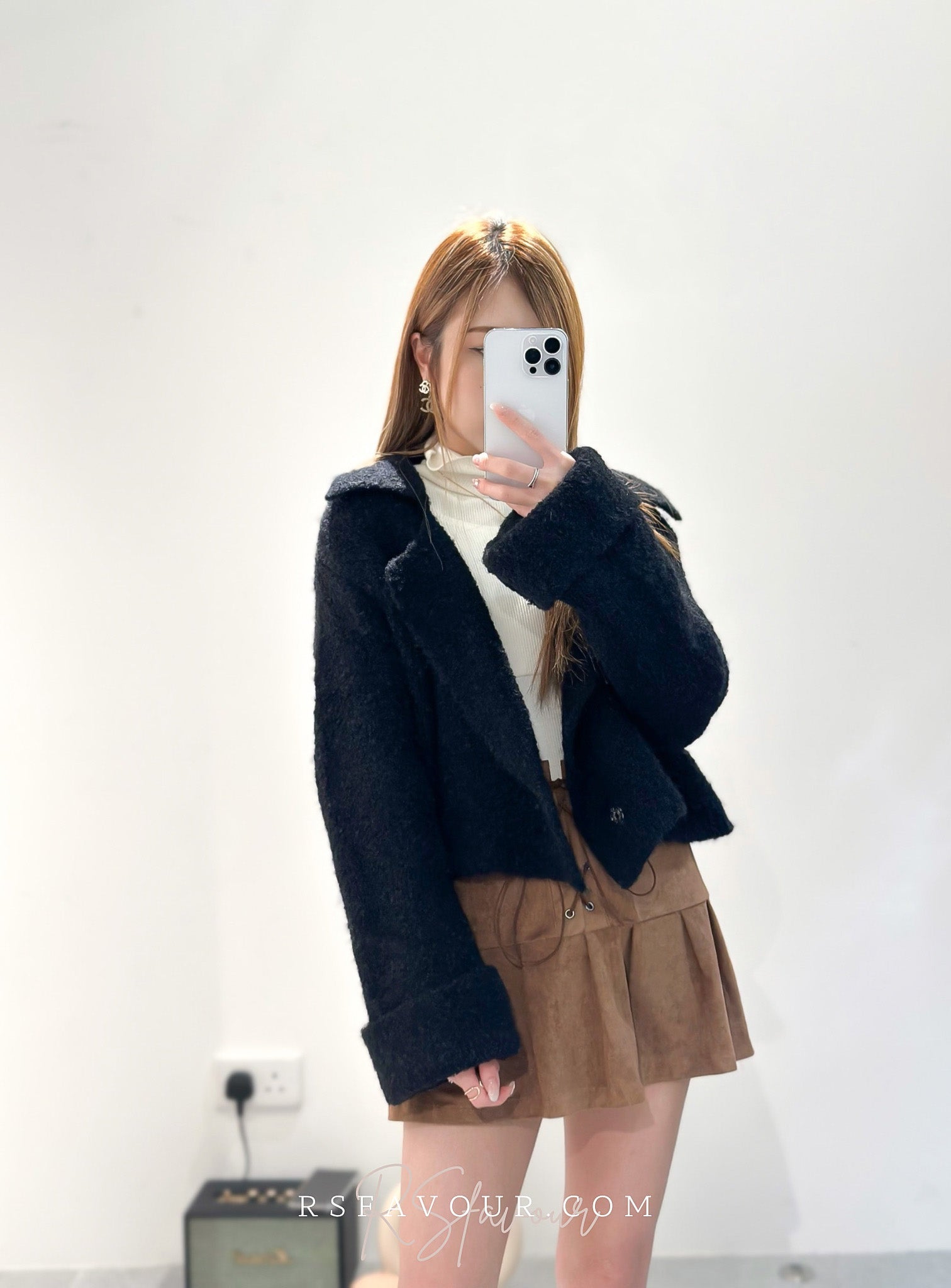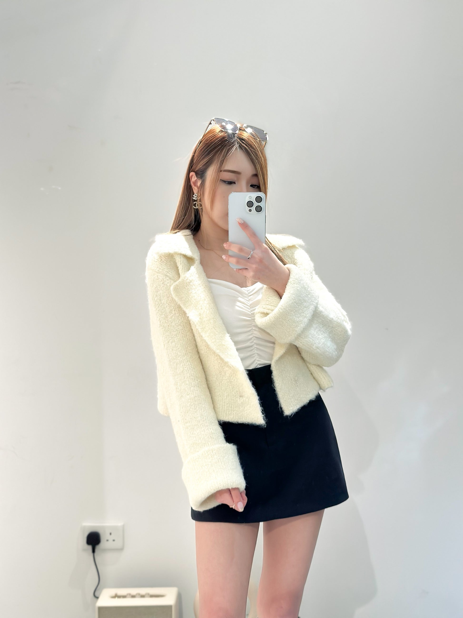(KR) 珠冷軟綿綿反領短外套|兩色入