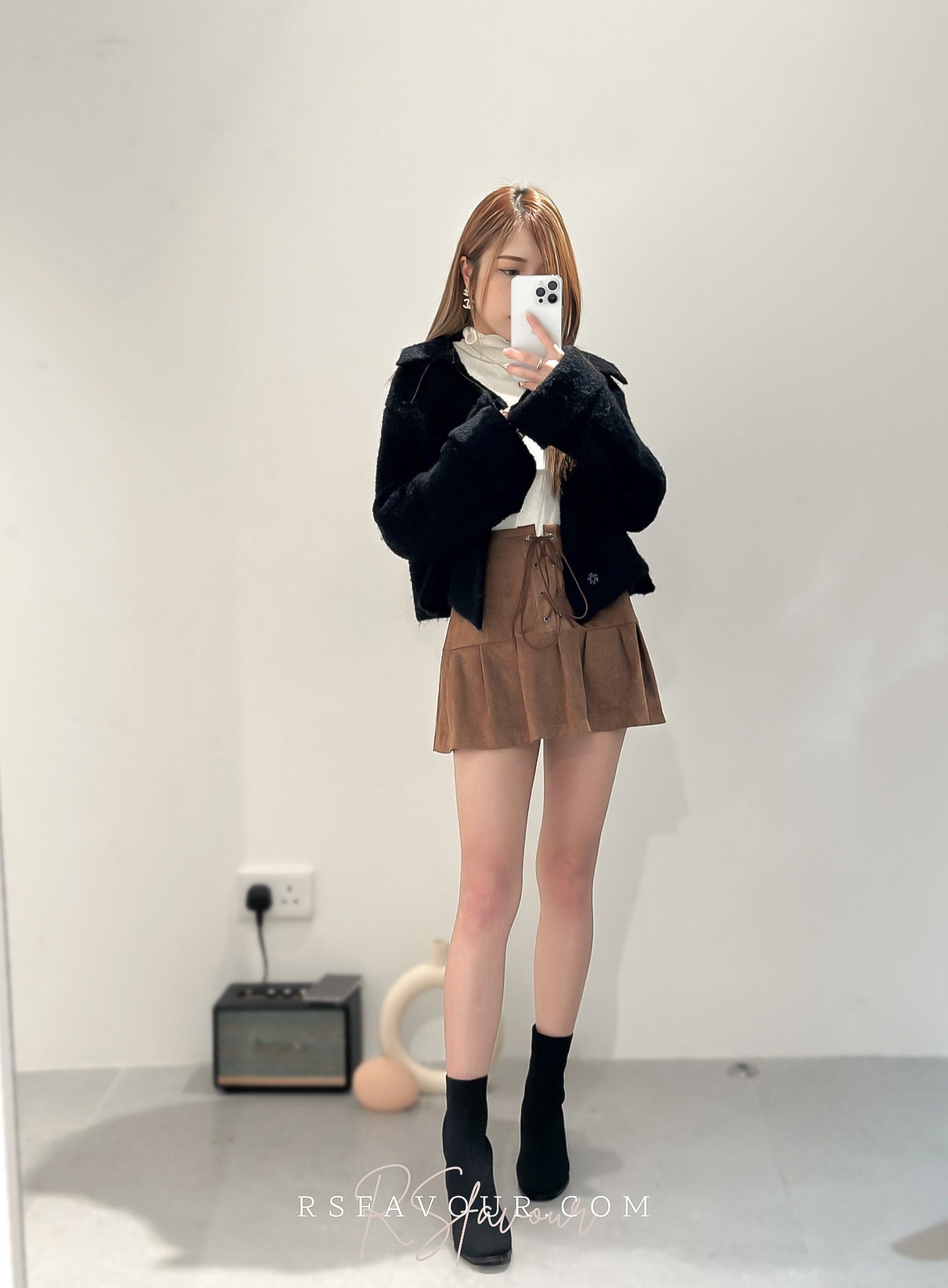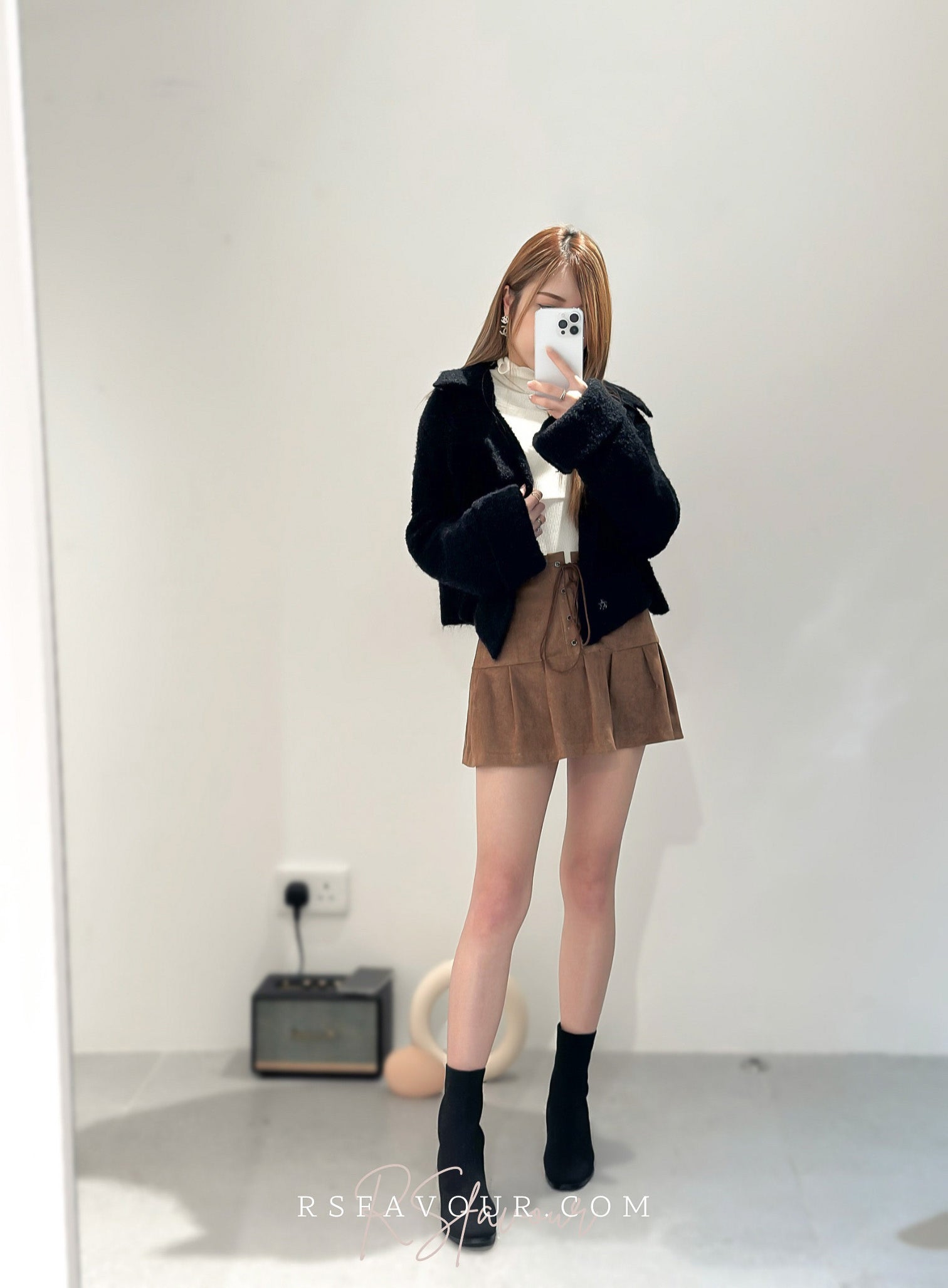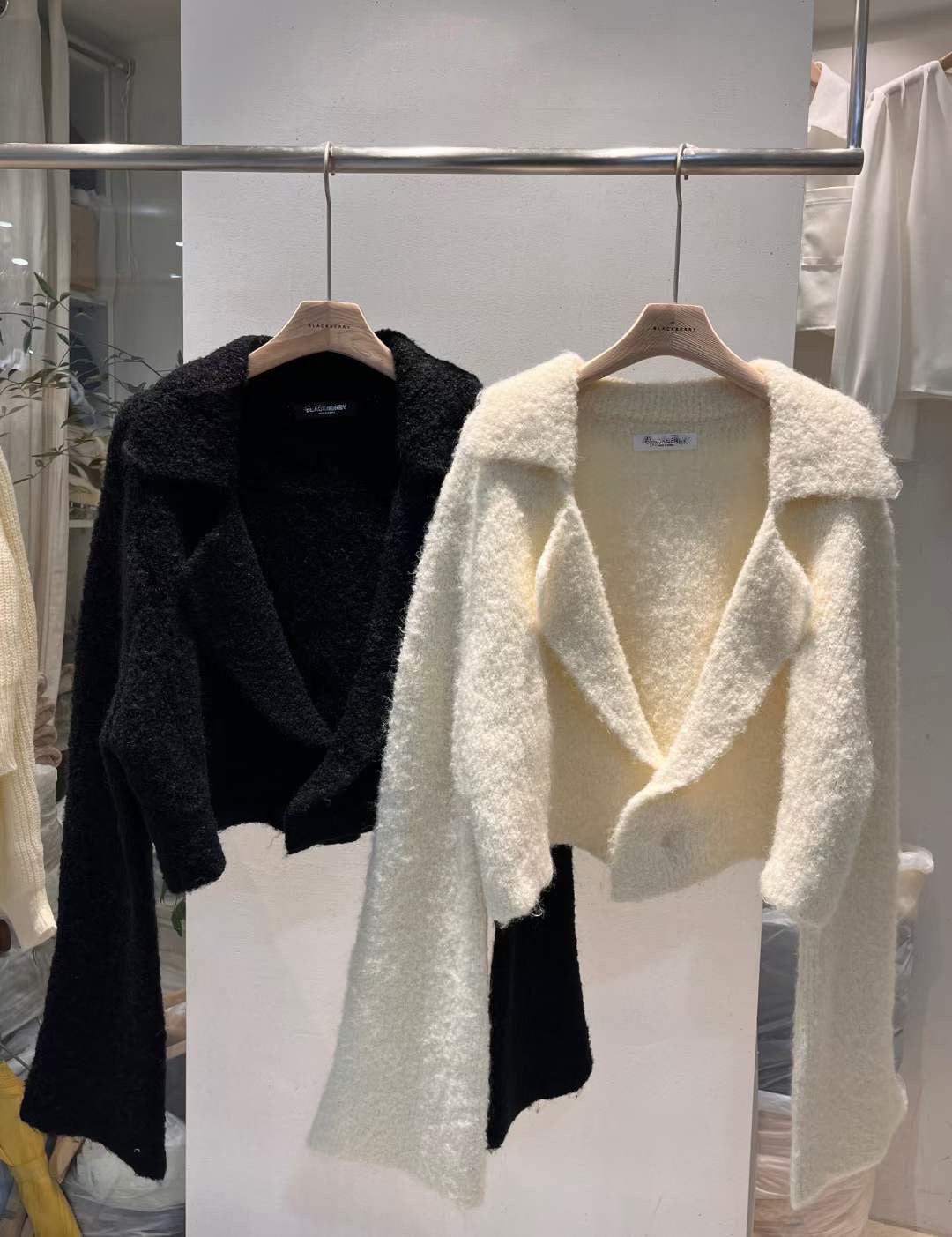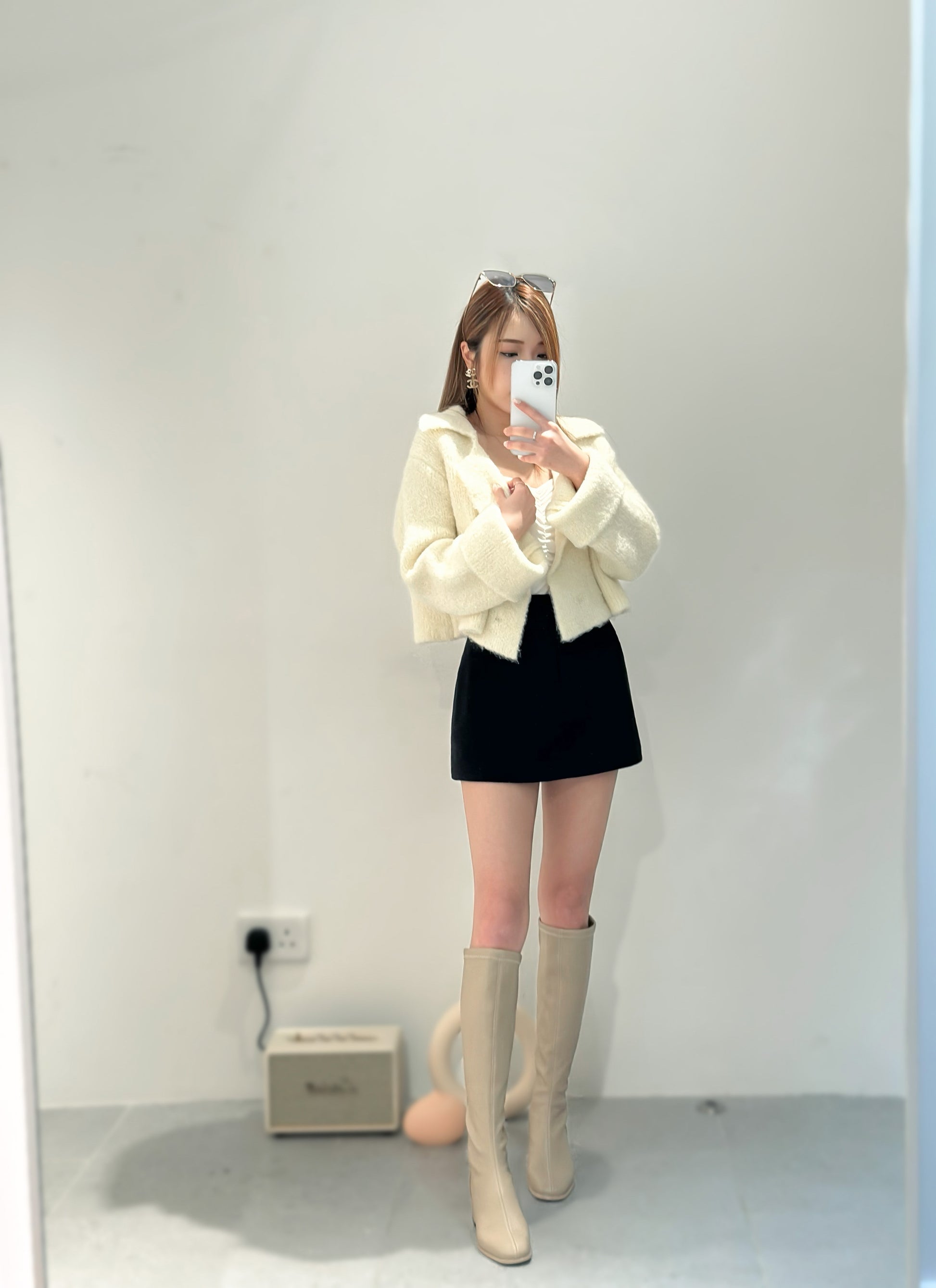 (KR) 珠冷軟綿綿反領短外套|兩色入