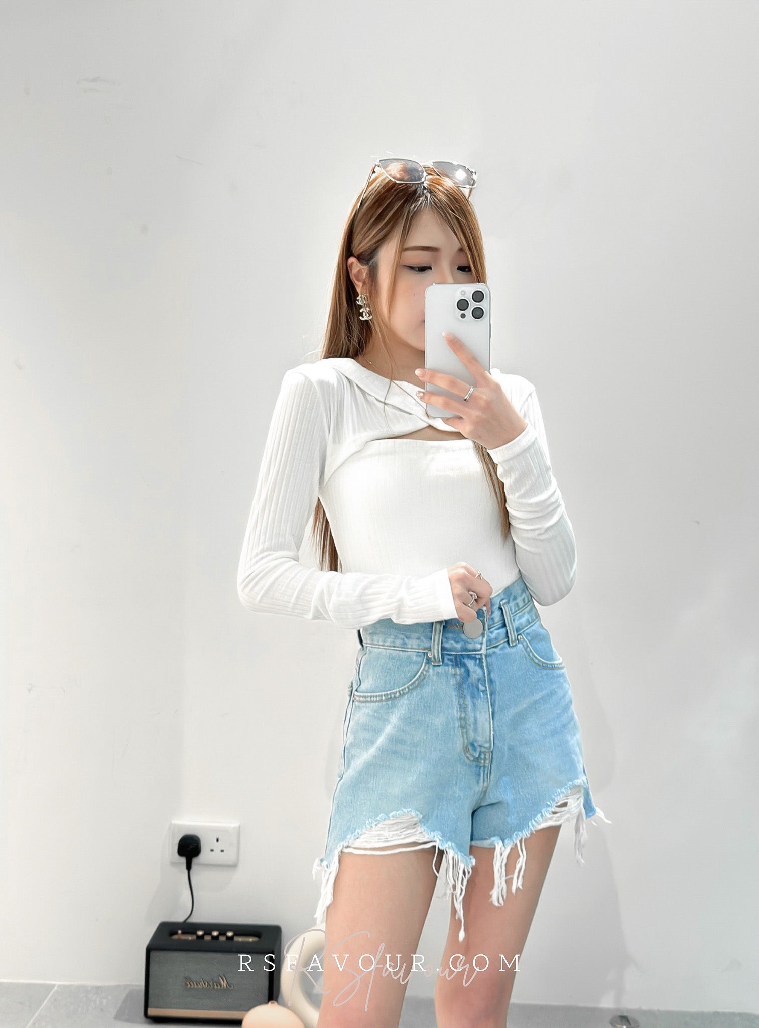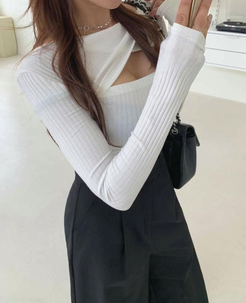 (KR) 開胸綿質上衣|溫柔白