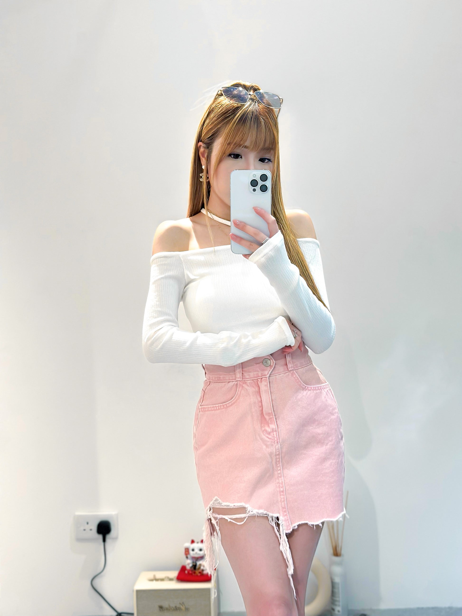 (KR) 闊邊高腰微包臂牛仔裙|三色入