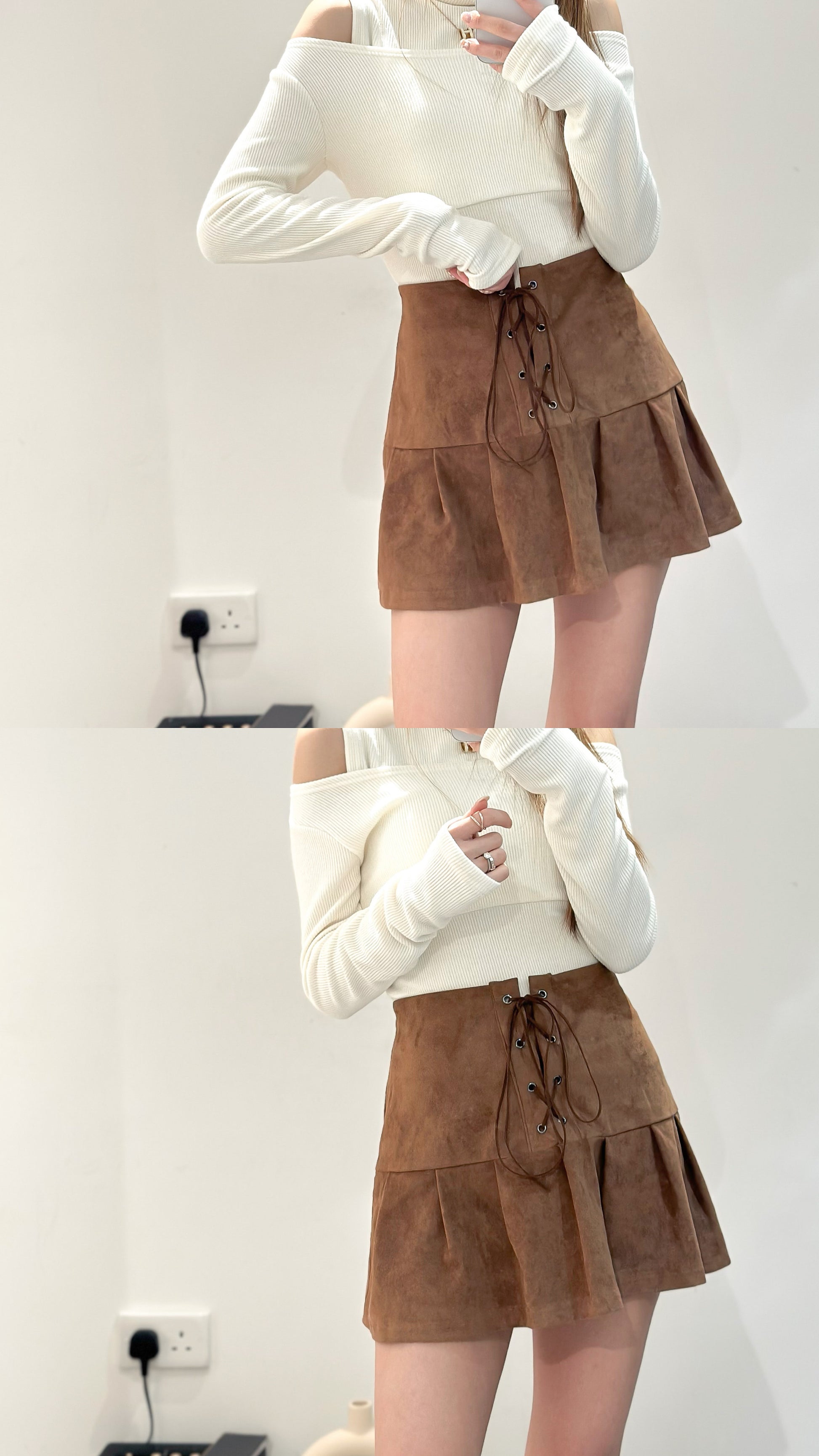 (KR) 麂布前綁繩魚尾裙|兩色入