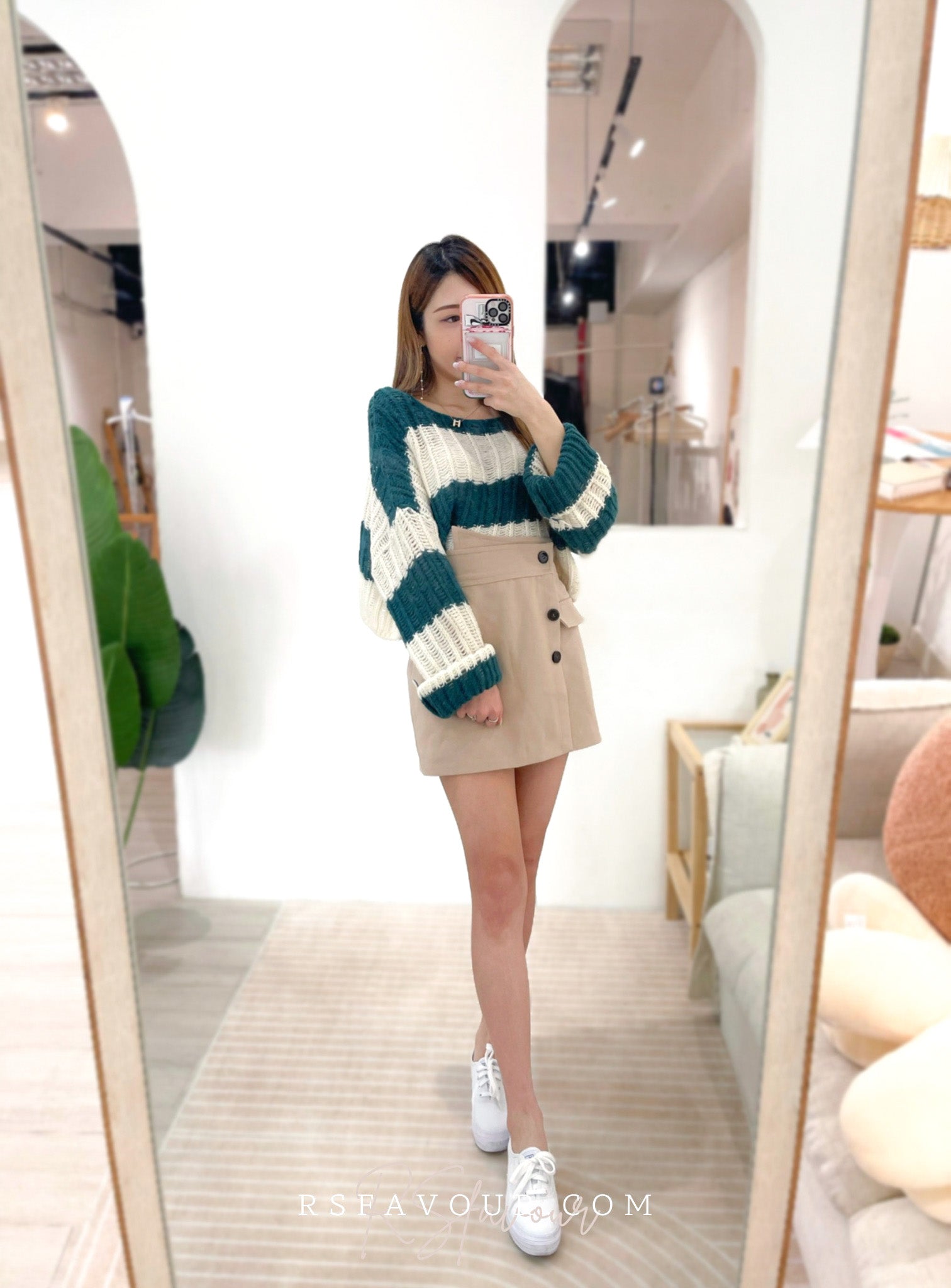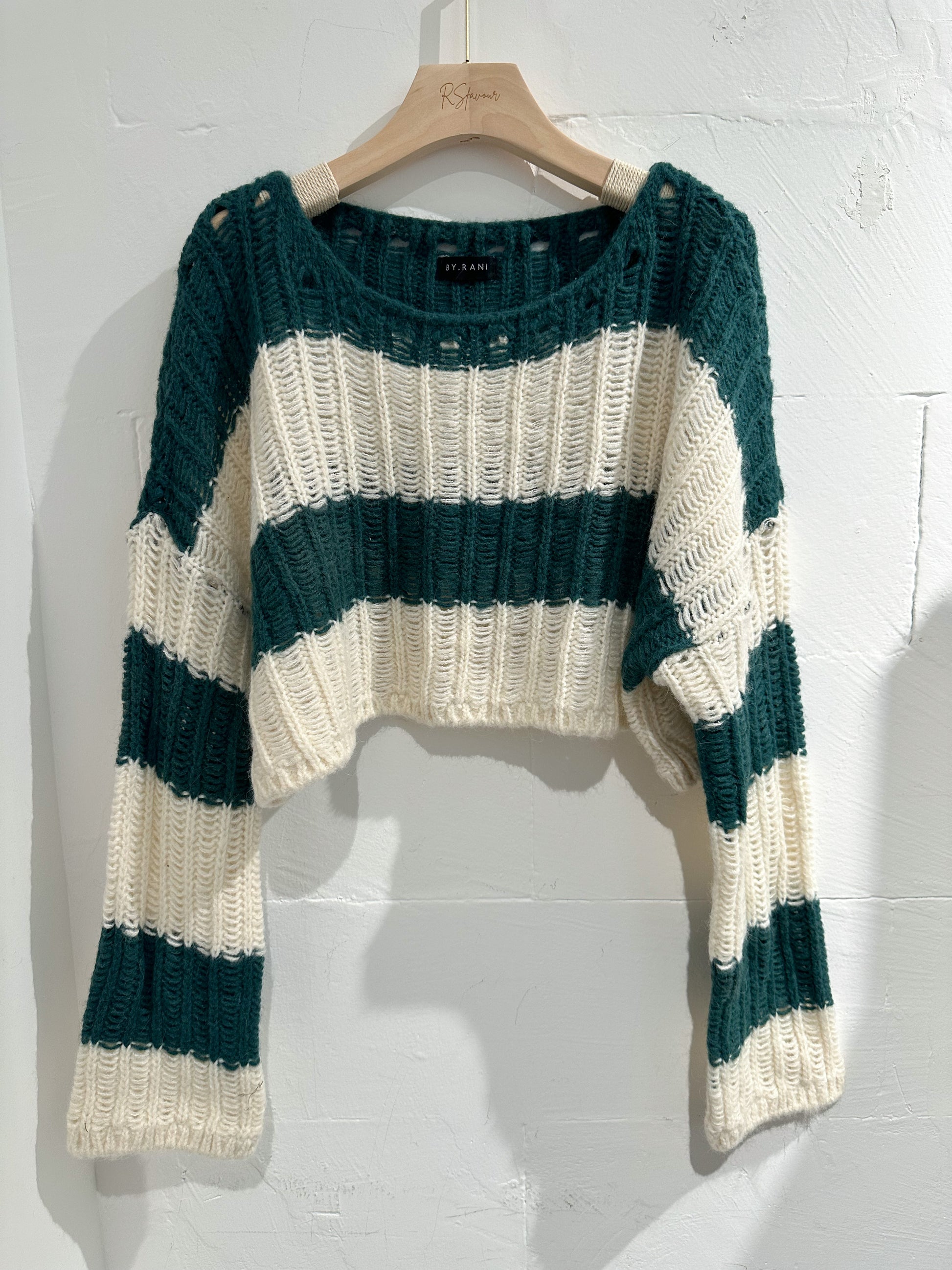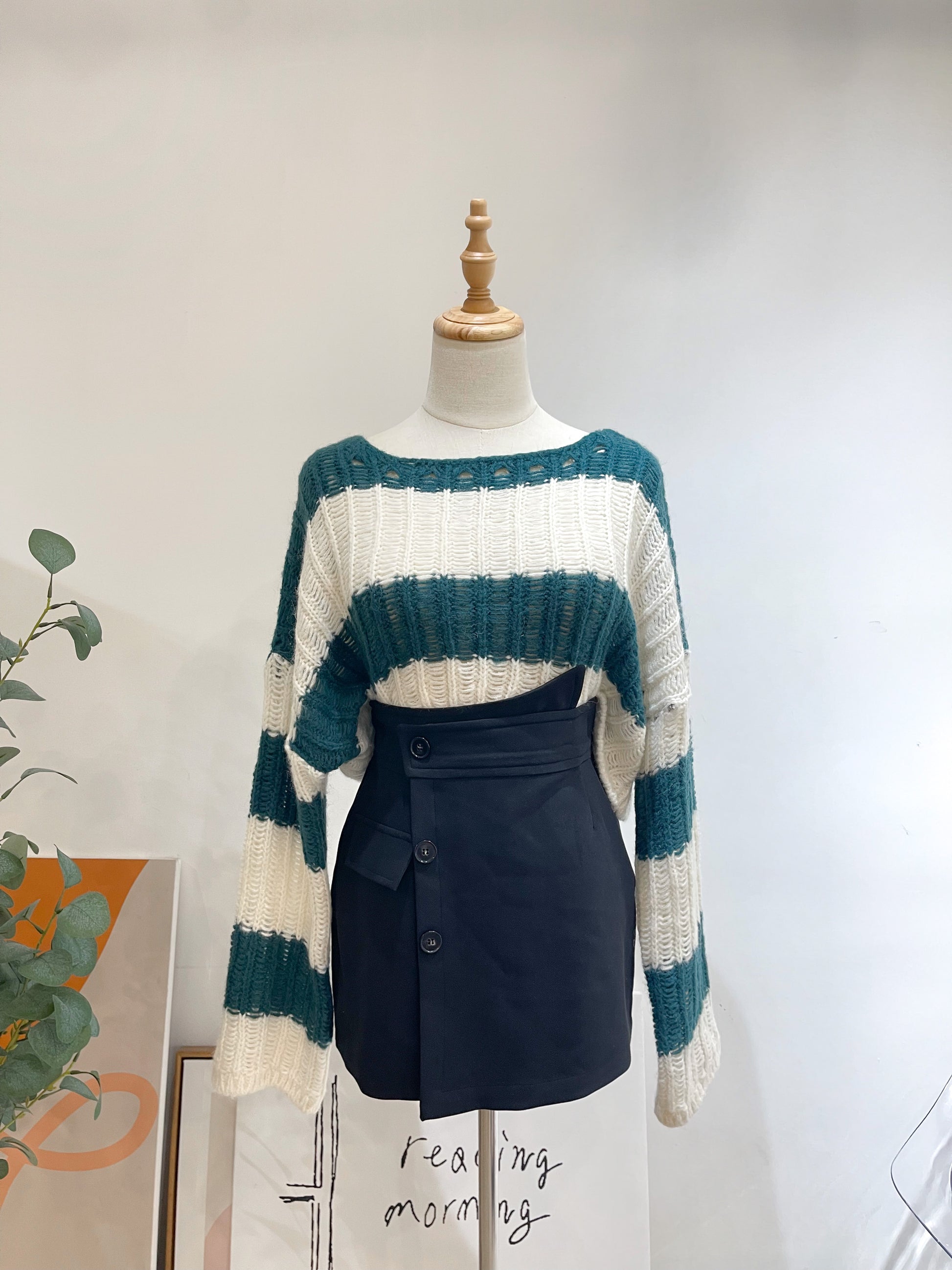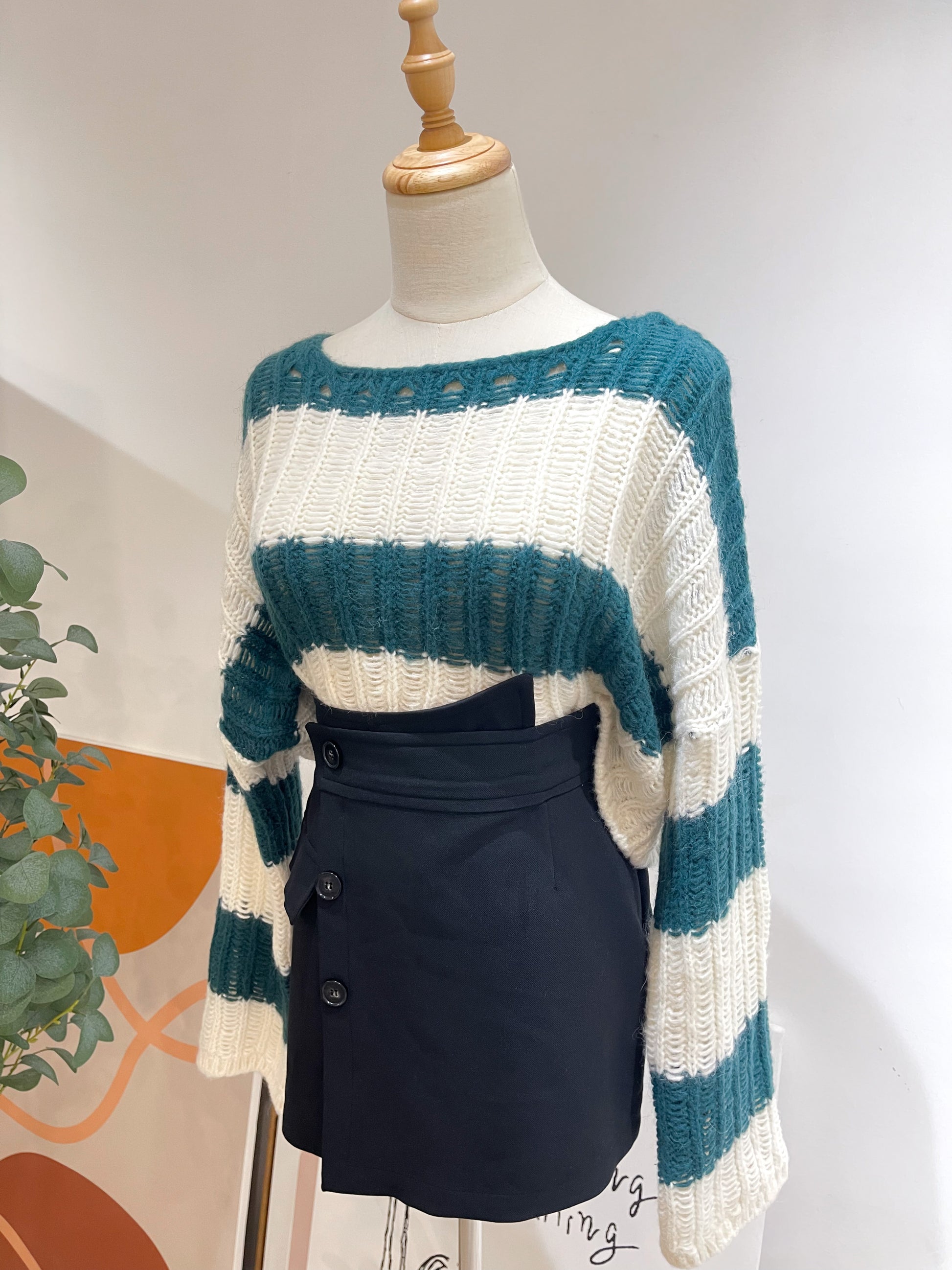 (KR) 橫間針織冷衫|深綠色